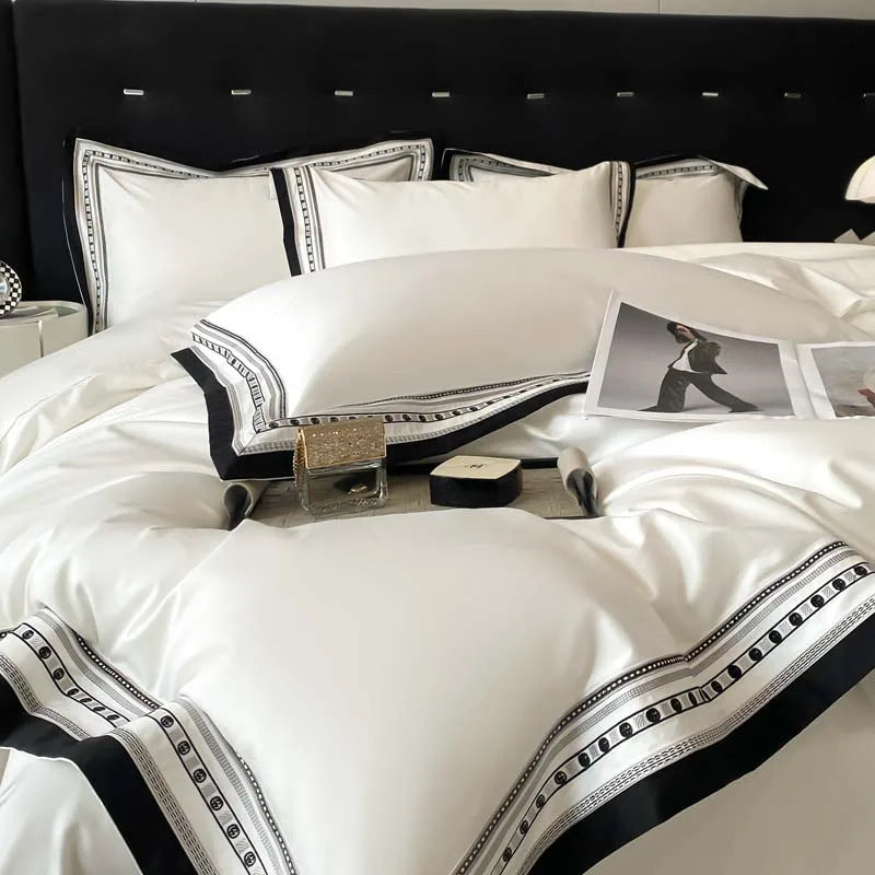 Indulge in the luxurious cotton bedding set, made from 100% Egyptian cotton for supreme softness and durability. This complete set, available in a range of colours and multiple sizes, includes a sheet, duvet cover, and pillowcases, offering elegance and easy care.